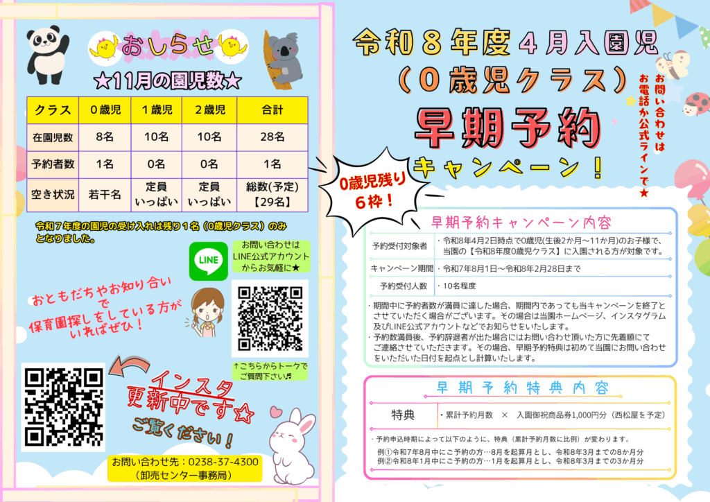 米沢市中田町にある企業主導型保育園。私たちは地域で働くお父さんお母さんを応援しています!