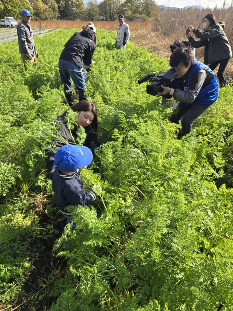 なかなか畑からニンジンを収穫する機会はないので、美味しいニンジンの見分け方や持ち方などを教えていただいていたようです。